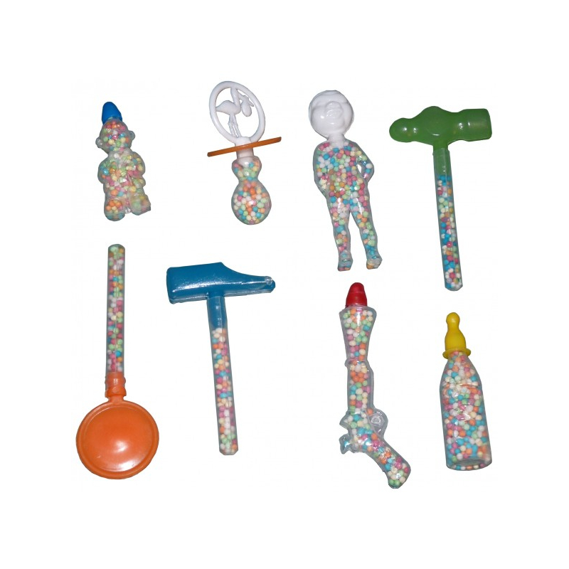 Zutaten: Zucker, Glukosesirup, Erdbeeraroma, Farbstoffe E171, E100, E120, E131, E133 und E160.