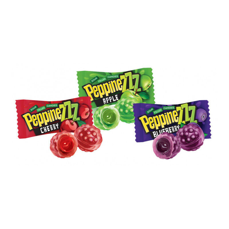 Glukosesirup, Zucker, Säuerungsmittel: Málicsäure, Zitronensäure, Mischung aus Milch- und Zitronensäuren, Fumársäure, konzentrierte Säfte (0,3 %): Kirsche, Blaubeere, Apfel, Aromen, Farbstoffe: E163, E100, E160a, E132.