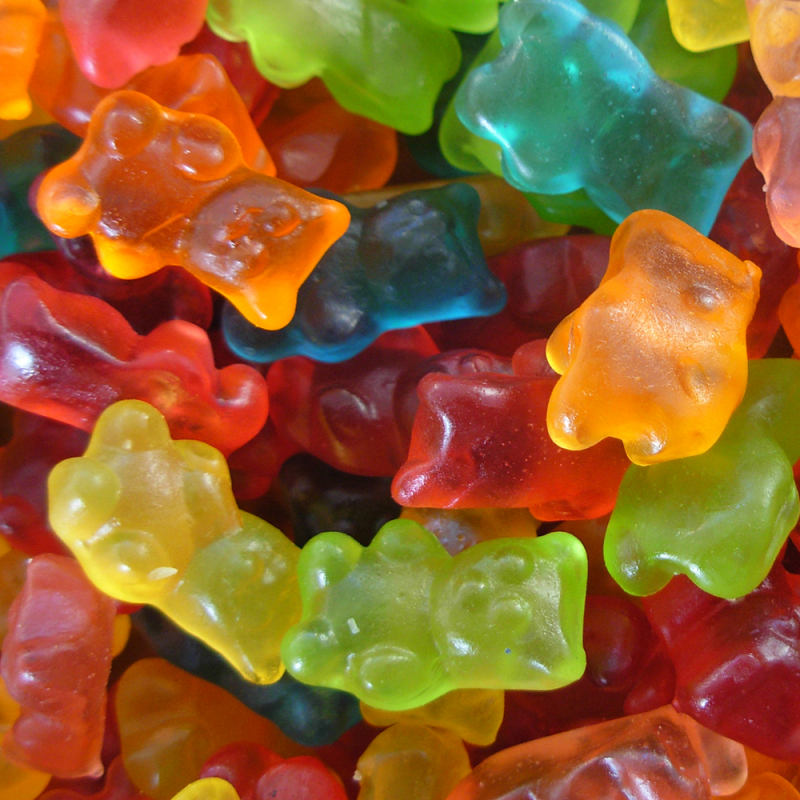 Köstliche Mini-Bären von Farben und Aromen mit Helligkeit sortiert.