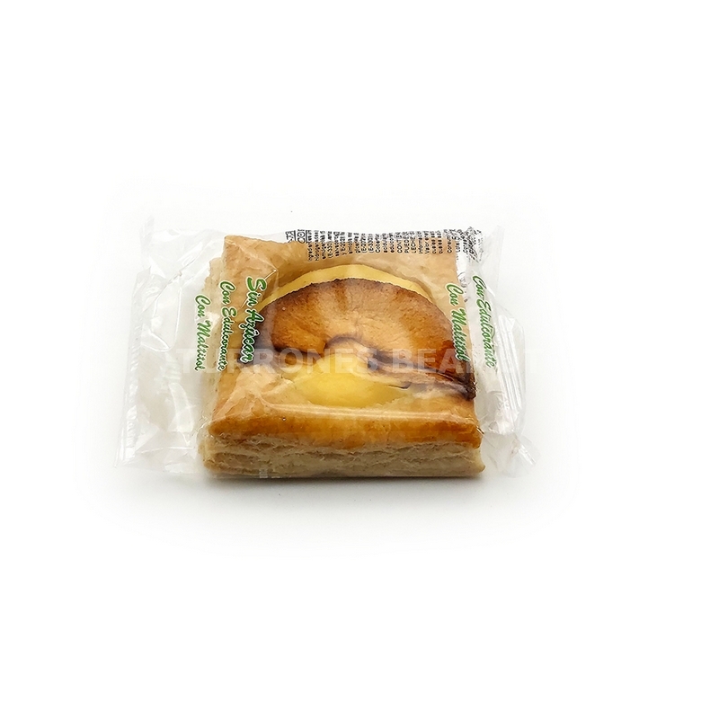 Wheat flour, vegetable fats, hydrogenated vegetable fats, vegetable oils, water, salt, lard, apple, wheat bran and salt. Coverage: Maltitol.
