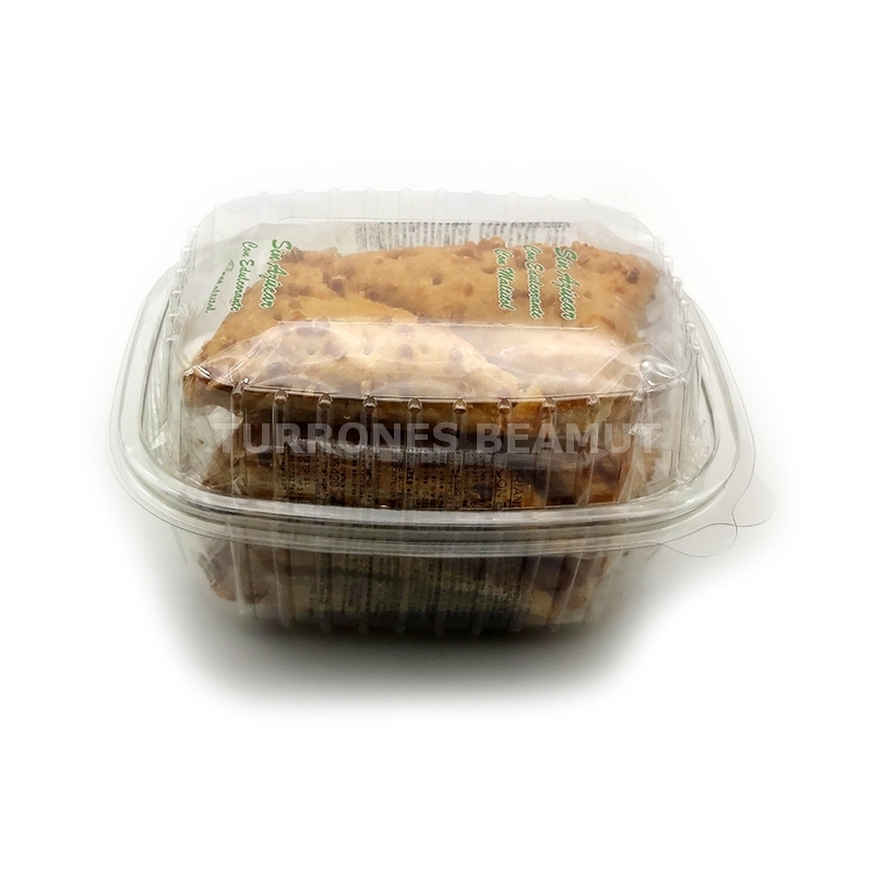 Harina de trigo, grasas vegetales, grasas vegetales hidrogenadas, aceites vegetales, aromas, agua, manteca de cerdo, salvado de trigo y sal. Cobertura: Maltitol y cacahuete.