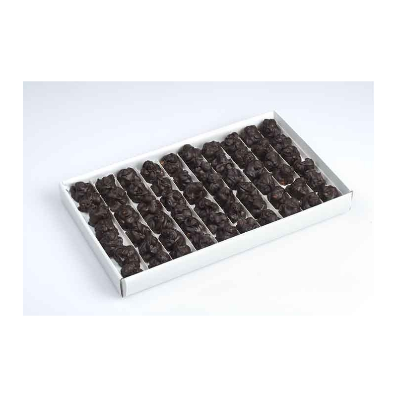 Ingredientes: (Cacao min. 60%), Azúcar, Pasta de cacao, Avellana 23%, Manteca de cacao, Cacao en polvo desgrasado, Emulgente (Lecitina de soja) y Vainilla.