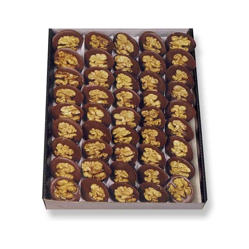 (Cacao min. 40%) Azúcar, Manteca de Cacao, Nueces (20%), Leche desnatada en polvo, Leche entera en polvo, Pasta de Cacao, Emulgente (Lecitina de soja) y Vainilla.