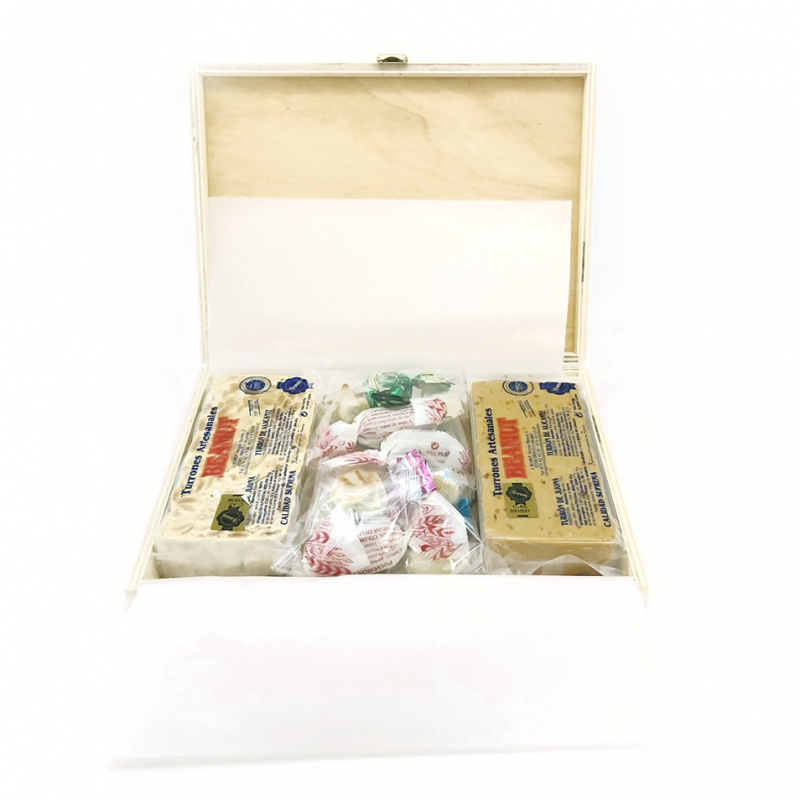 (3 bombones, 3 Mazapanes, 3 Polvorones, 3 almendras rellenas, 3 bocaditos de chocolate).