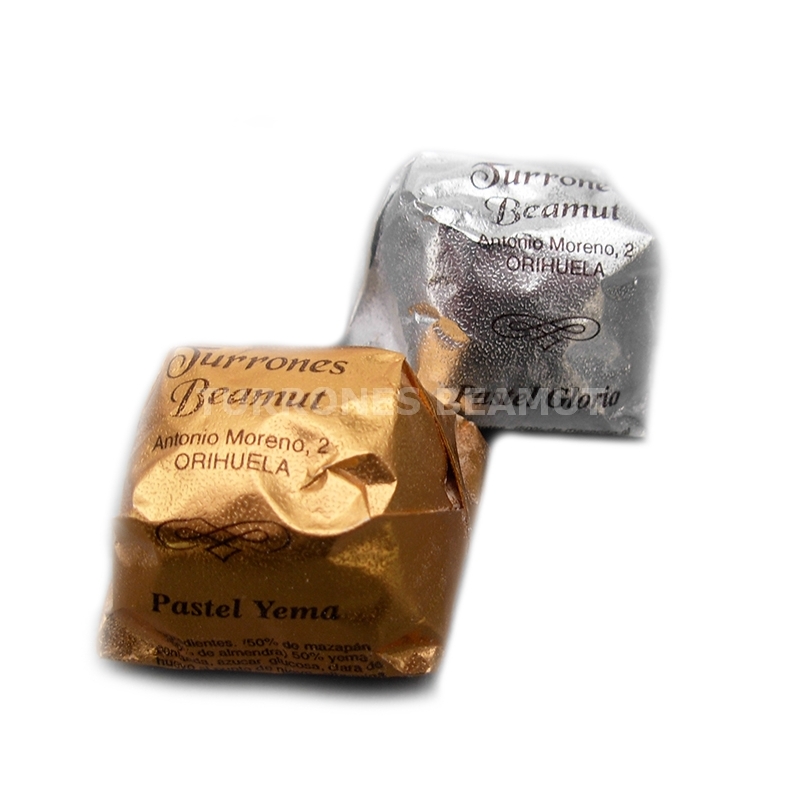Deliciosos y suaves pasteles de mazapán rellenos de batata y yema, recubiertos con una fina capa de azúcar glasé.