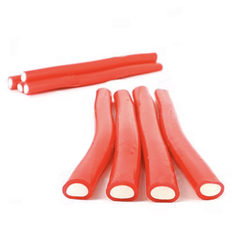 Azúcar, jarabe de glucosa y fructosa, harina de trigo (gluten), almidón, gelatina, grasa vegetal (palma, coco), aceite vegetal (palma, coco), acidulantes (E270, E296, E330), aromas, correctores de acidez (E325, E331), sal, emulgente (E471), humectante (E422), colorantes: E129.