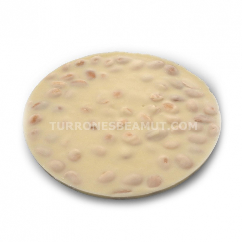 40% Amandes marcone torréfiées, chocolat (pâte de cacao, sucre, beurre de cacao, lait écrémé en poudre, émulsifiant: lécithine de soja E-476 et vanilline).