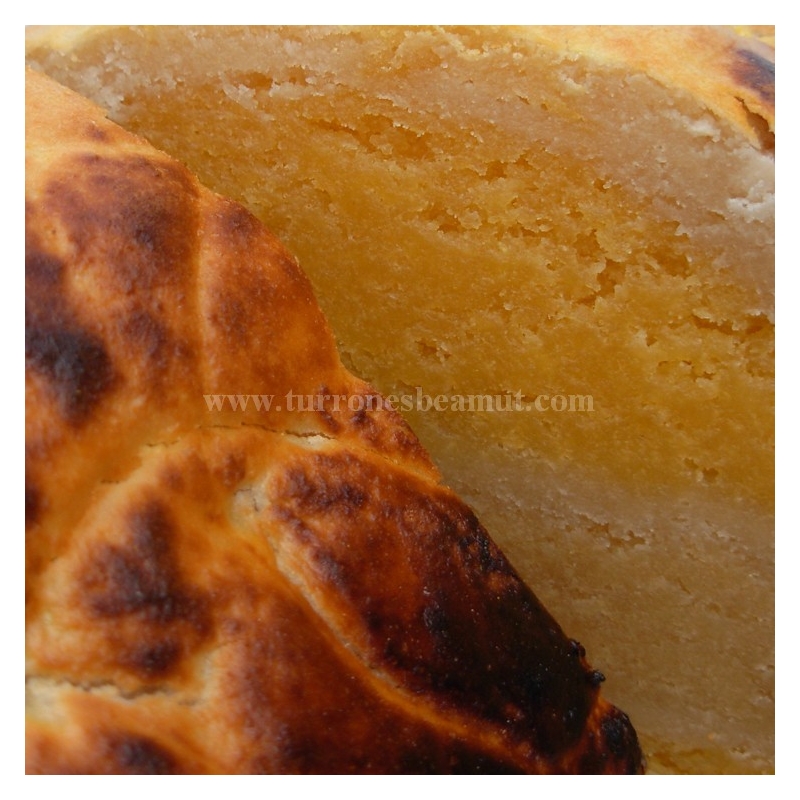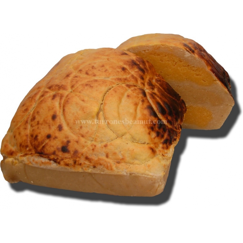 Nougat de massepain artisanal fait d’amande espagnole de marcona farcie au jaune d’œuf et à la patate douce.