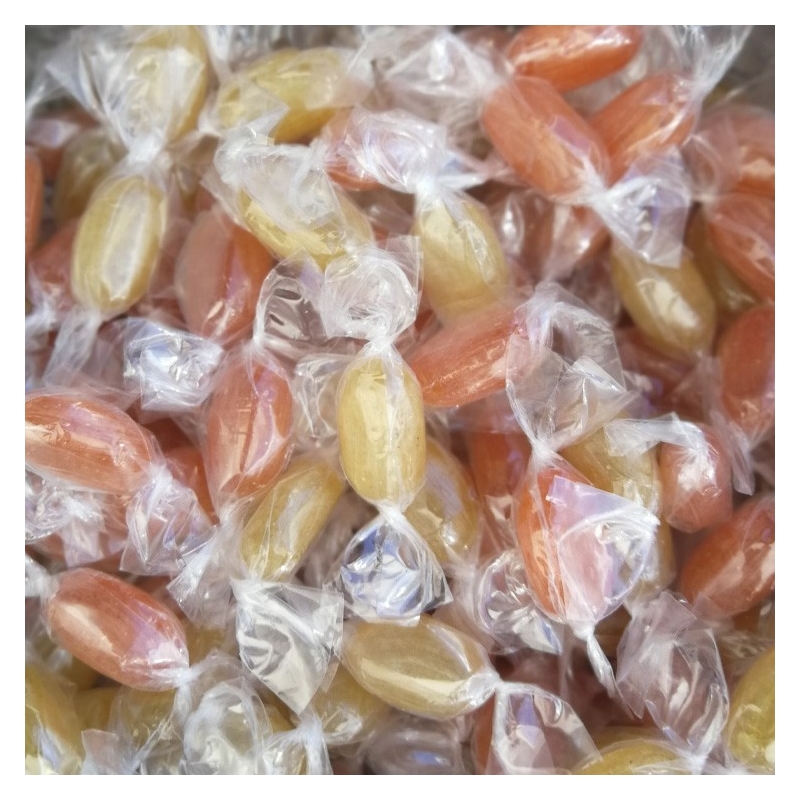 Isomalt, acide citrique, gingembre, essence de citron/orange, coloration e-100, E-120, vitamine C et Stevia
