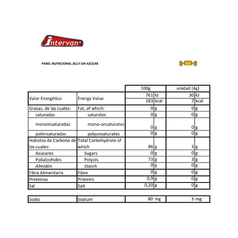 Édulcorants: Maltitol et sirop de maltitol, eau, jus de citron, acidifiant: E330, gélifiant: E-440, extraits de plantes colorantes (carotte, carotte noire, carthame, hibiscus, citron, citrouille), arômes naturels, édulcorants: E957, E960.