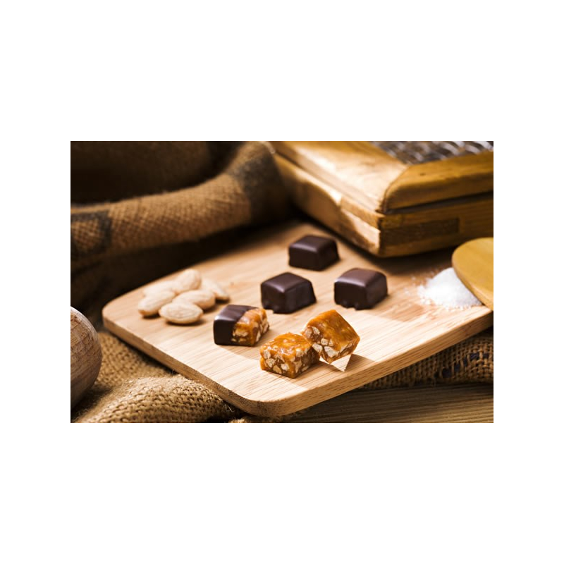 Le sucre, l'arachide et enrobage de chocolat (sucre, pâte de cacao, beurre de cacao, émulsifiant: lécithine de soja et arôme: vanilline).