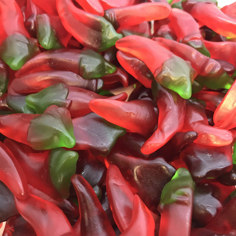 Sucre, sirop de glucose, eau, hydratant E420, dextrose, gélatine, acidulants: E330, E270, correcteur d’acidité: E325, agents d’enrobage E901, E903, arômes, colorants: E102, E129, E133. Produit dans une usine qui traite également des produits laitiers.
