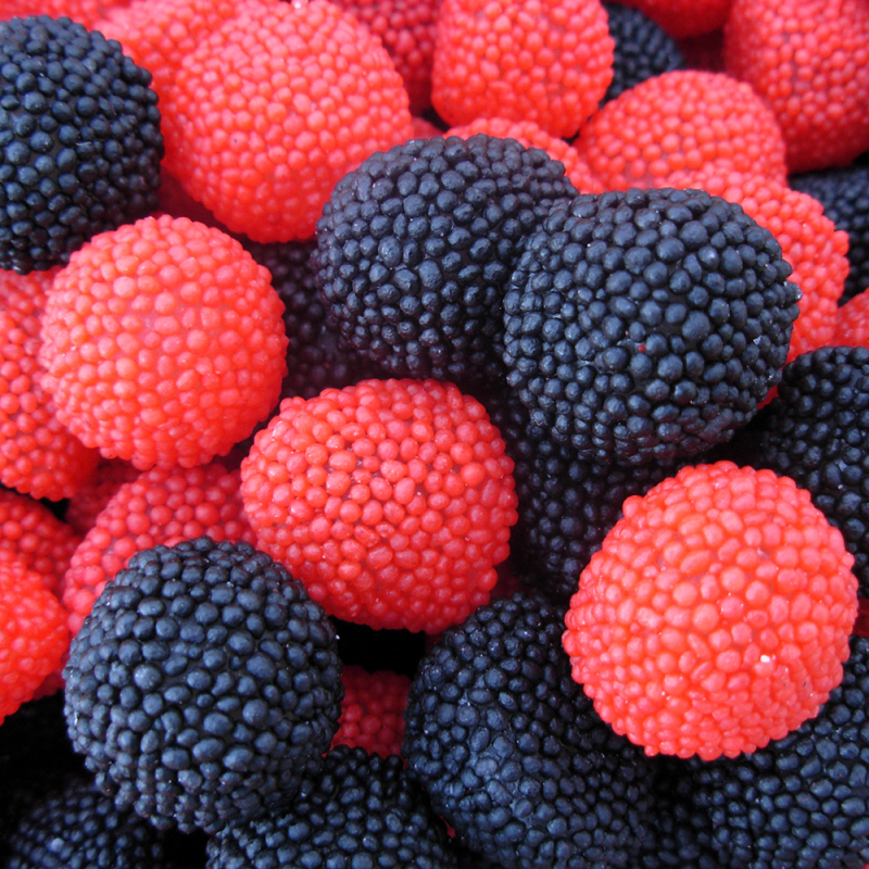 Sucre, sirop de glucose, eaux, gélifiant : gélatine et pectine, dextrose, acidifiant (E330) (E270), correcteur d’acidité (E325), arômes, colorants (E122, E124, E129, E153).