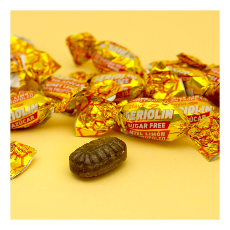 Isomalt, propolis en poudre (0,5 %), acidulant : acide citrique, édulcorant : glycosides de stéviol, huile essentielle de citron, mentol et arômes.