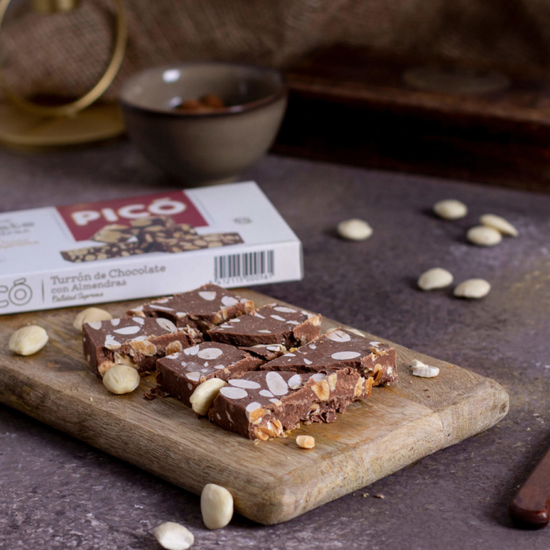 Amandes grillées (38%), beurre de cacao du sucre, de lait entier en poudre, pâte de cacao, poudre de lactosérum, beurre anhydre, lécithine de soja (émulsifiant E-322) et l'arôme. Cacao min: 17,5%. Peut contenir des traces de noisettes.