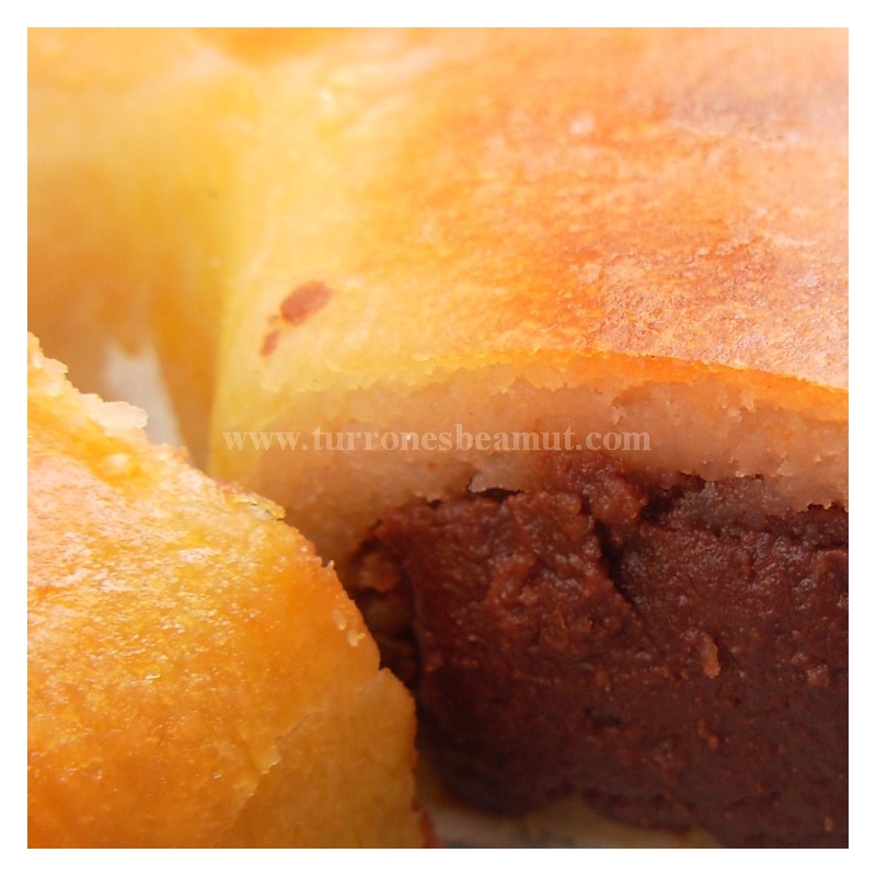 Ingrédients: 50% Massepain (66% d'amandes, le sucre, le glucose et conservateurs E-200), s'étendant au chocolat 50% (sucre, huile végétale, poudre de cacao dégraissé, graisse végétale hydrogénée, pâte de noisette, lait écrémé en poudre, émulsifiant lécithine de soja et arômes) peint avec naturel jaune-orange colorant (E-160A) et albúina, pommes de terre et des traces de plaquettes d'amidon de maïs. Peut contenir des traces de sulfites.