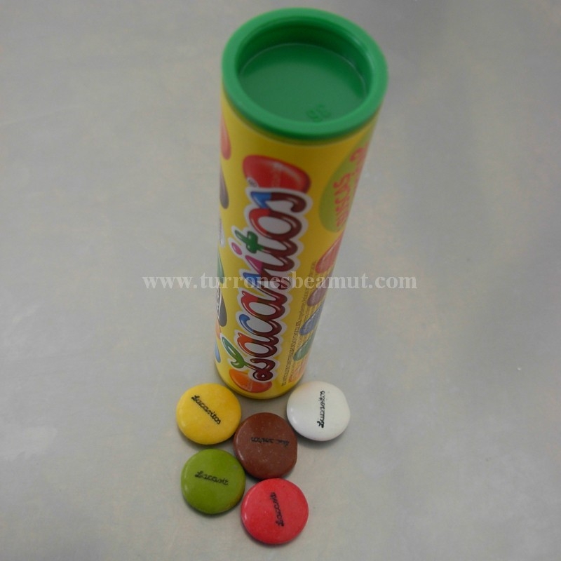 Zucchero, burro di cacao, pasta di cacao, latte scremato in polvere, latte intero in polvere, colorante (E-171, E-120, E-163, E-160A, E-172, E-101, E-141, e-153), emulsionante (lecitina di soia), agenti di rivestimento (e-414, e-903, e-901) e gli aromi (vanillina). Cacao minimo 37%.