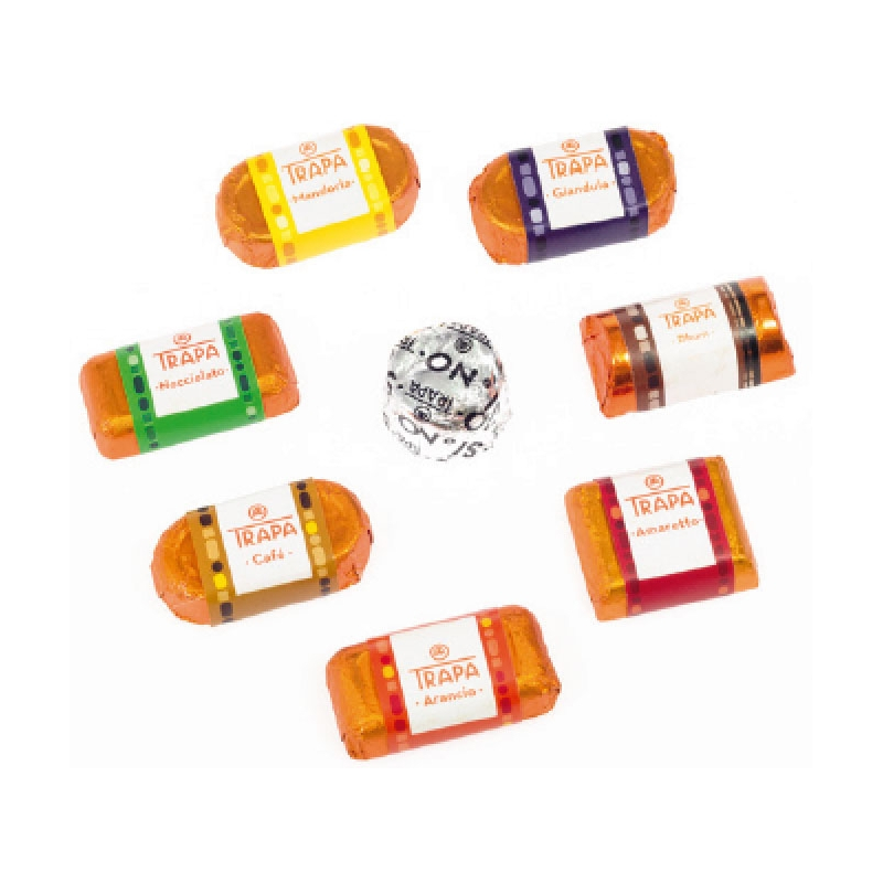 Oli zuccheri, grassi e vegetali (cocco, girasole e oliva), burro di cacao, pasta di cacao, latte in polvere, latte in polvere, polvere defattata cacao, pasta di nocciola (2%), pasta di frutta forestale (1,5%) (zucchero, sciroppo di glucosio-fruttosio, acqua, gelso, lampone, ribes, fragola, amido di mais modificato, gelificazione (agar-agar, pectina), colori alimentari (concentrato di carota e mirtilli ridotti), correttori di acidità (acido citrico, citrato di trisodio), aroma, colorazione (caramello di ammonio), conservatore (sorbato di potassio)), pralina di mandorla (mandorla (0,5%), zucchero), nocciola (0,5%) Emulgent (Lecitina di soia), latte di latte scremato in polvere, caffè decaffeinato (0,1%), burro, frutti della polvere della foresta (frutta (fragola, mirtillo di mirtillo, lampone, anziano, ribes nero, barbabietola), maltodestrina), saccose, glucosio, acidulante (acido citrico)), aromi. Gluten.