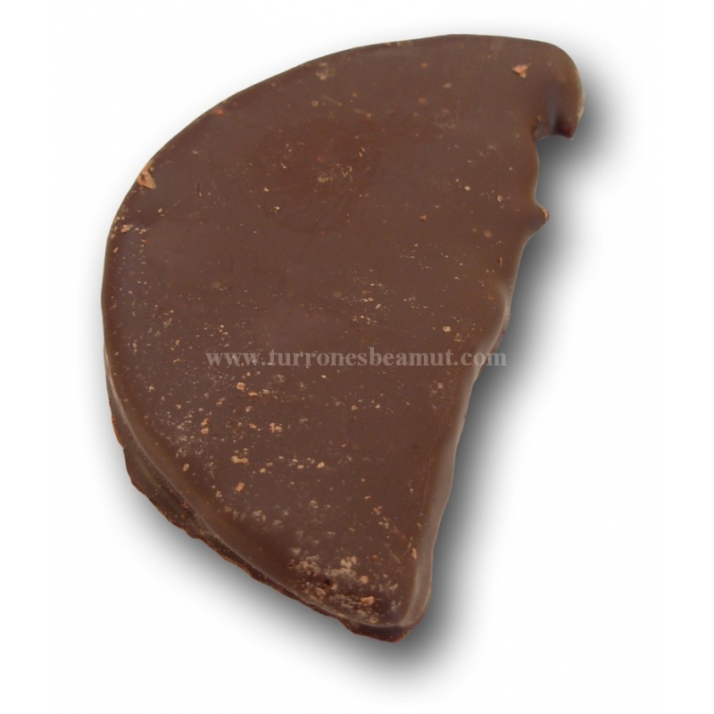 Laranja cristalizada (xarope de laranja, glicose e frutose, açúcar, ácido cítrico e aromatizante) e revestimento de chocolate** (açúcar, pasta de cacau, manteiga de cacau, emulsionador: lecitina de soja, aromatizante: vanillina, cacau min. 56%).