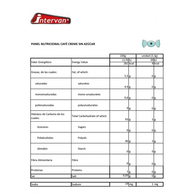 Adoçante: Isomalt, creme de leite fresco (7%), café (1%), gordura de coco totalmente hidrogenada, cor: E171, emulsionador: lecitina de soja, adoçante: E950, aroma.