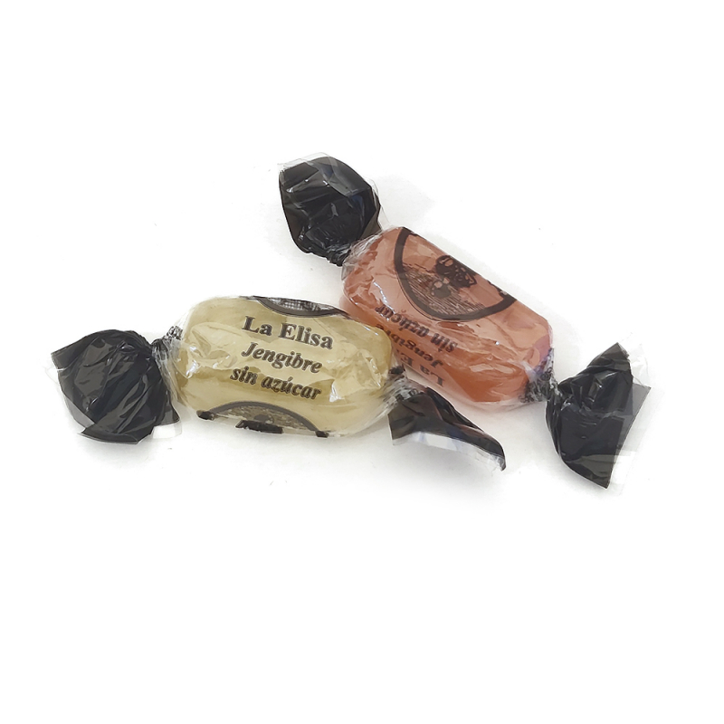 Isomalte, ácido cítrico, gengibre, essência de limão/laranja, coloração e-100, e-120, vitamina C e estévia