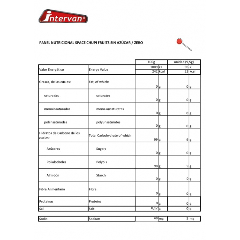 Adoçante: Isomalt, acidificador: E330, aromas de frutas e cola, corantes: E100, E141, E160c e E163, adoçante: E955.