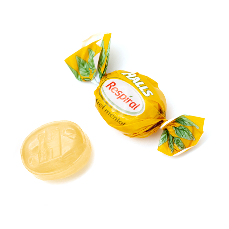 Açúcar, xarope de glicose, mel (0,3%), aroma, mentol, xarope de açúcar caramelizado.