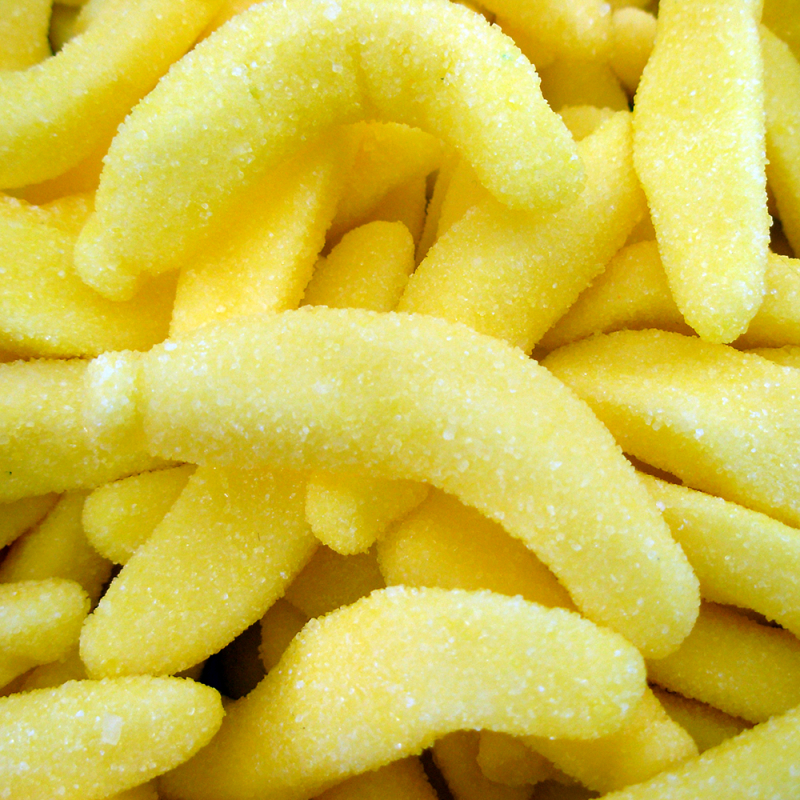 xarope de glicose, açúcar, água, gelatina, hidratante E420, acidulantes E330, E270, pectina de gelificação, aromatizantes, corretor de acidez E325, coloração: E102.