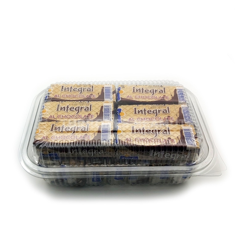 Farinha de trigo, gordura vegetal de palma (com antioxidantes: extrato rico em tocopherol e E304), frutose, farinha de trigo integral, soro de leite em pó, fibra de ervilha, cacau degradado em pó, farinha de arroz, gasificadores, aroma e corante.