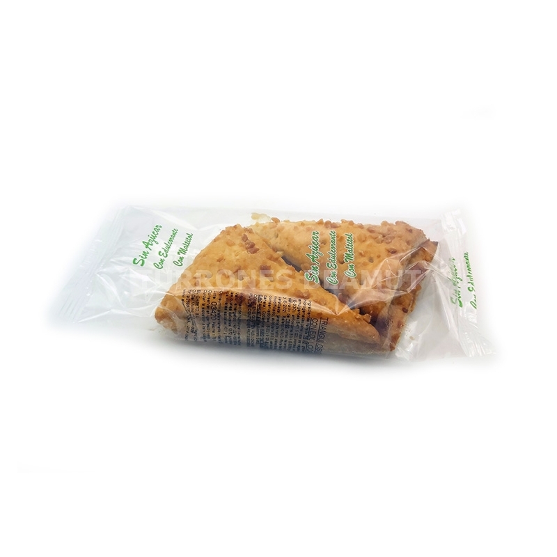 Farinha de trigo, gorduras vegetais, gorduras vegetais hidrogenadas, óleos vegetais, aromas, água, banha, farelo de trigo e sal. Cobertura: Maltitol e amendoim.