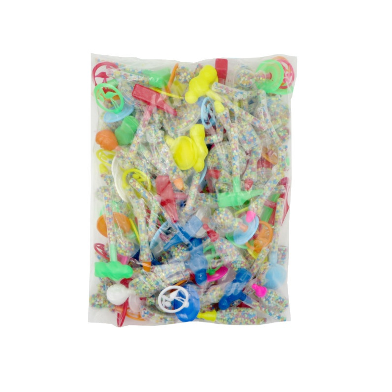 Saco de presentes variados em forma e cor para adicionar às piñatas que vêm preenchidas com bolas de anisete coloridas.