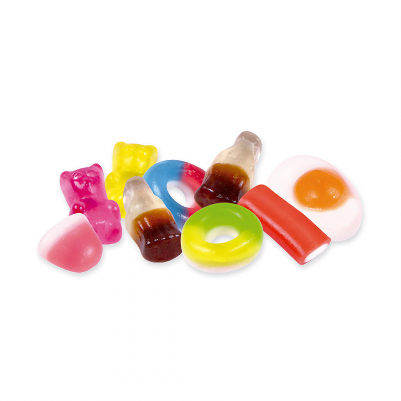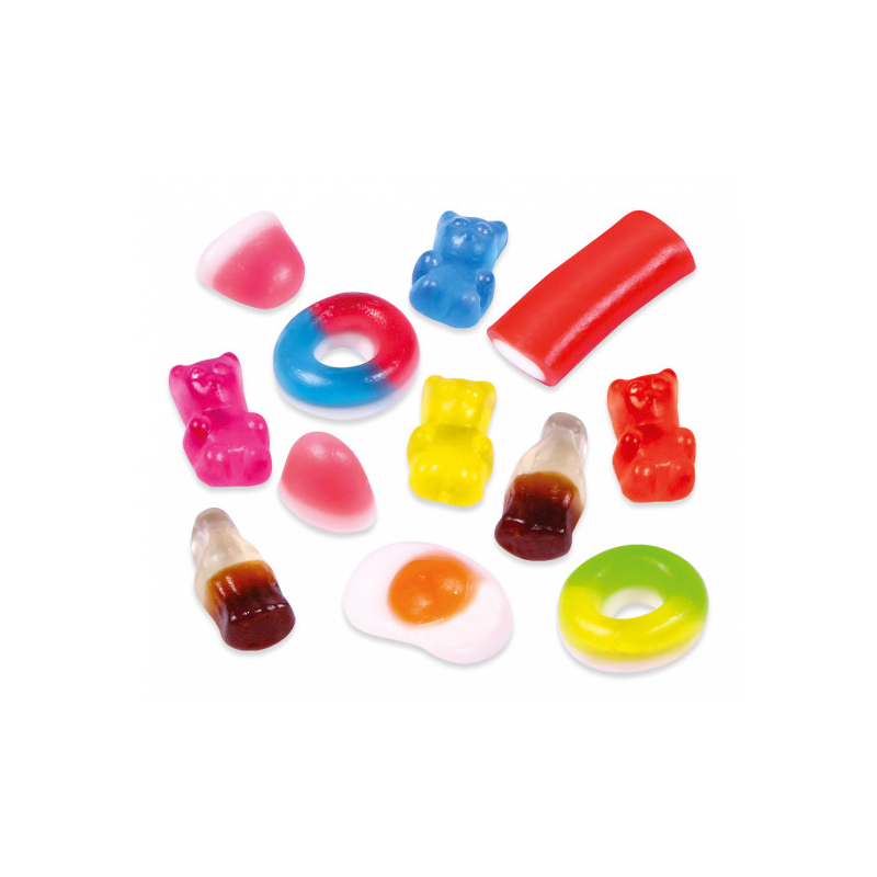 Glucose jarabe Fornecido com açúcar Fornecido com xarope de glicose e frutose Suprimentos de gelatina Fornecido com água Fornecido com hidratantes (E420) Acidificadores fornecidos (E296; E270; E330) Verificadores de acidez (E325; E331) Gordura vegetal fornecida (palma) .